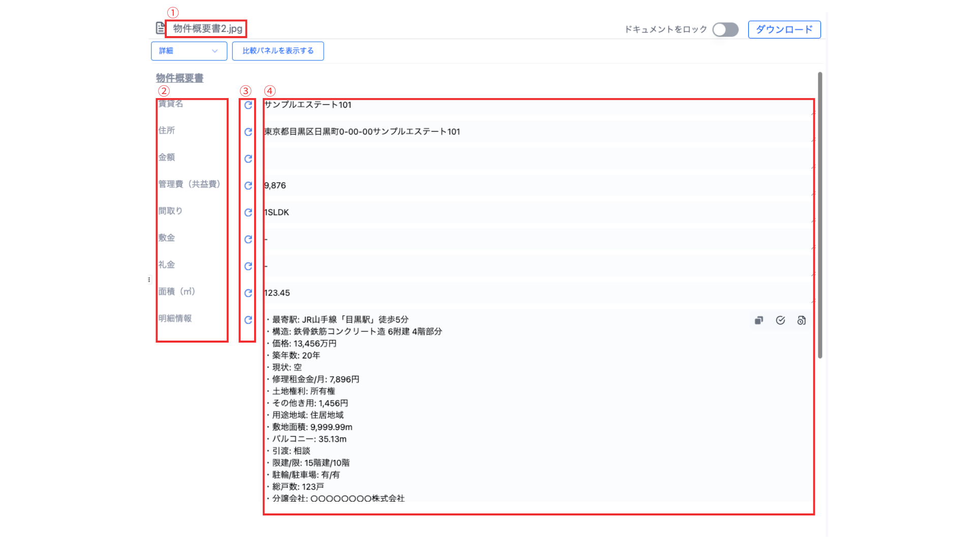 構造化されたデータ(解析結果)は、ドキュメントフォース内で検証、修正作業ができます。