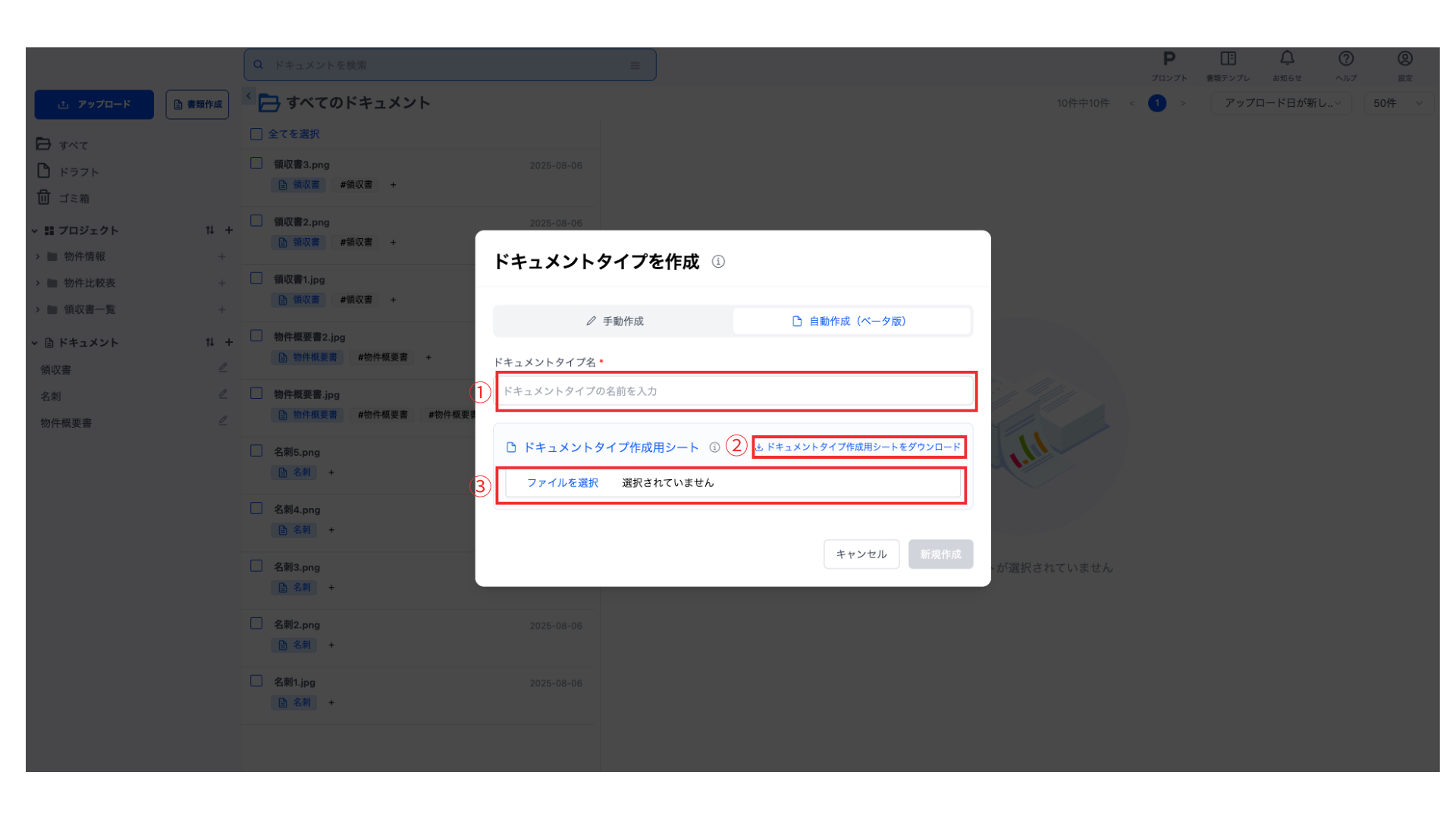 ドキュメントタイプの自動作成(ベータ版)