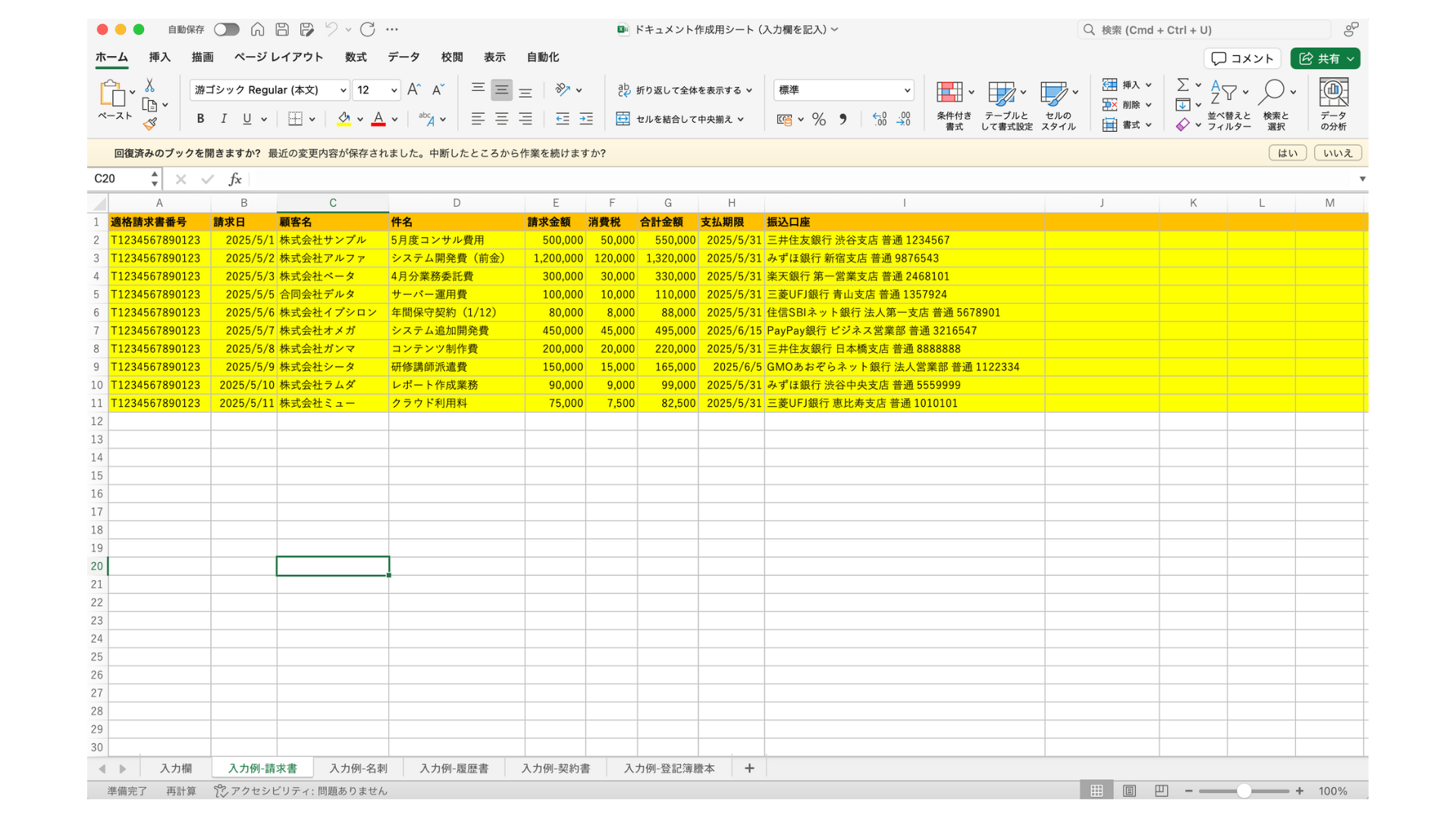 (例)入力欄-請求書