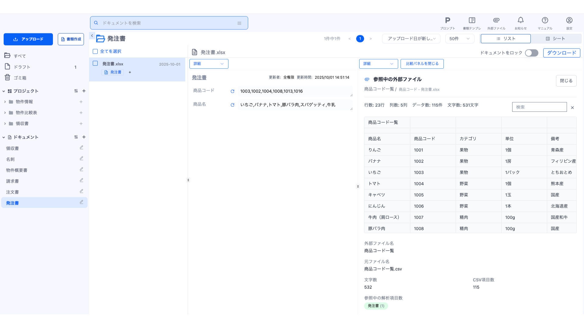 登録された外部ファイルはドキュメントタイプの解析項目ごとに参照されます。