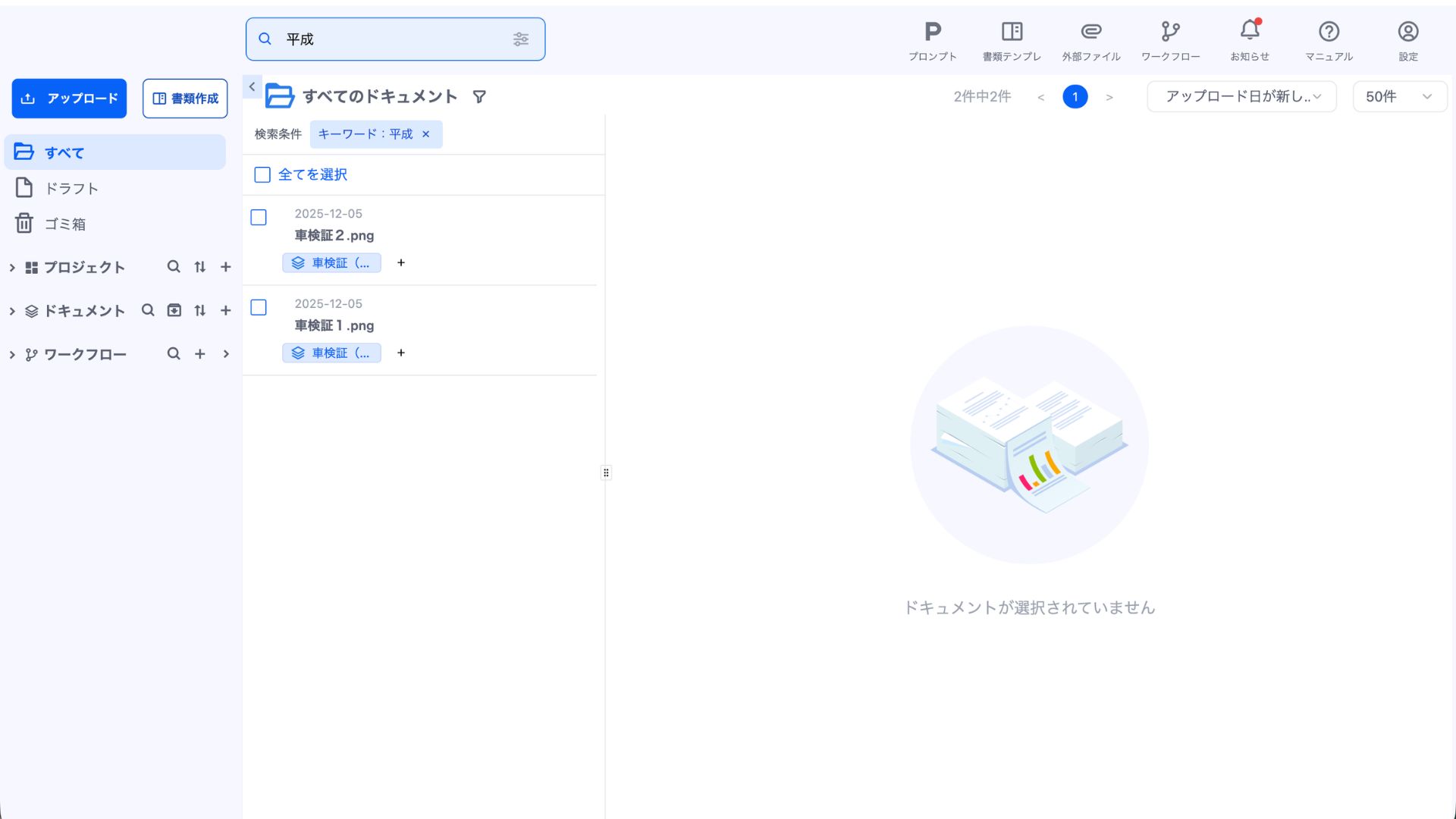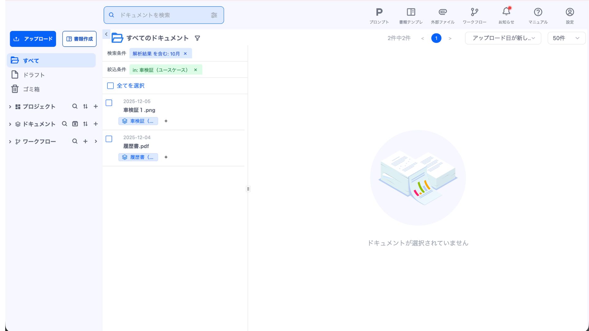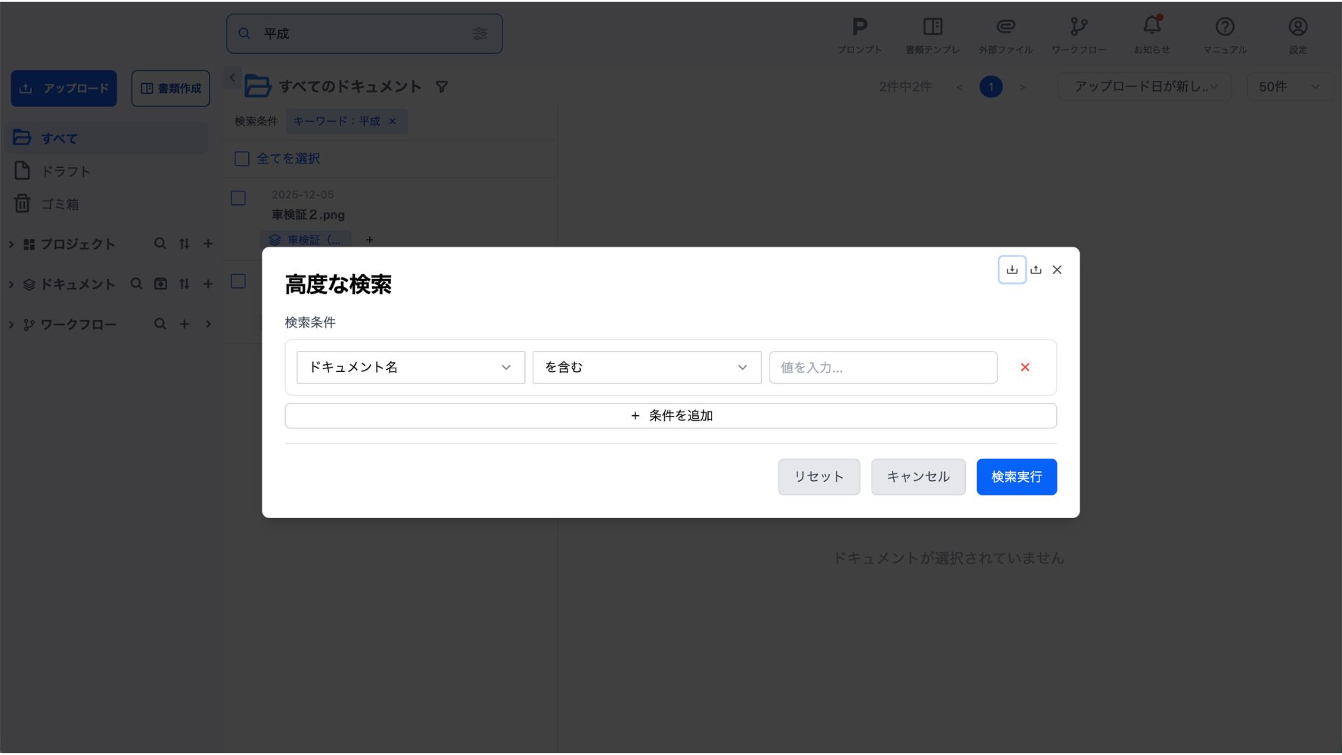 ドキュメント検索機能は、ワークスペース内の登録されたドキュメントを効率的に検索・絞り込むための機能です。
