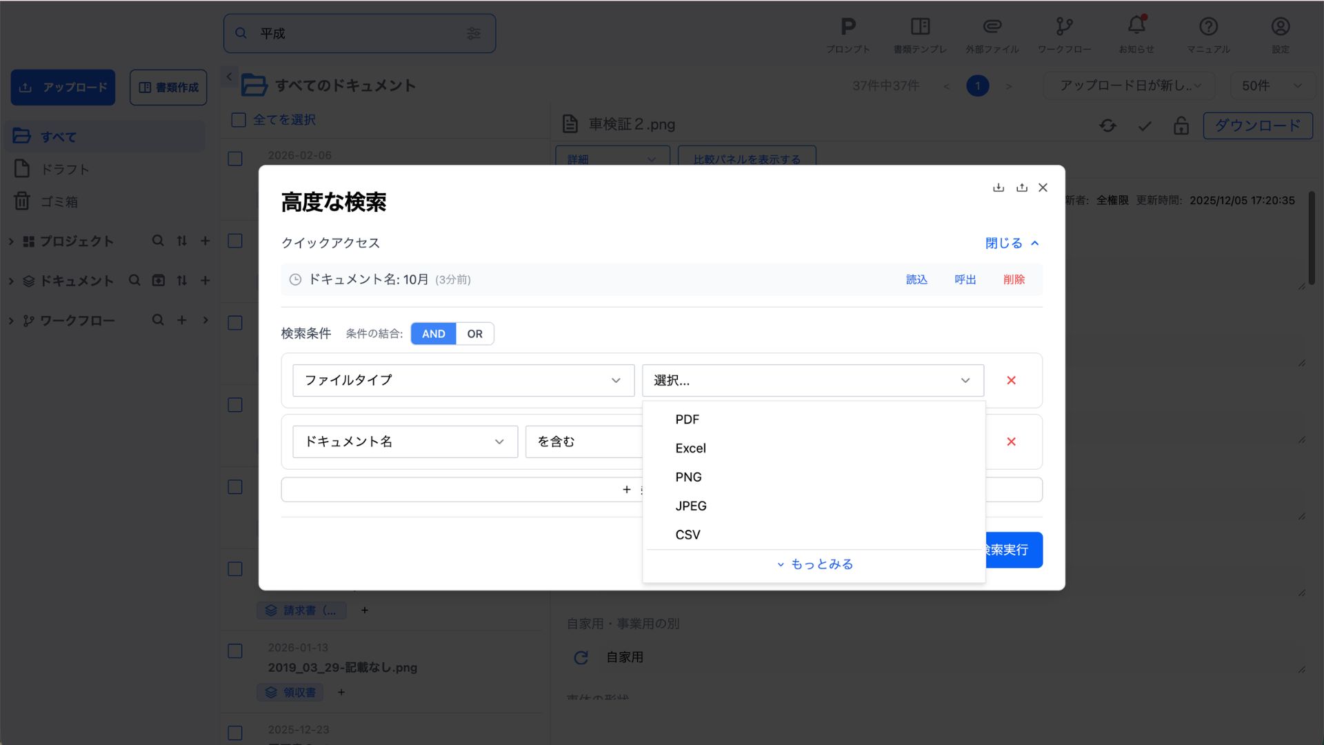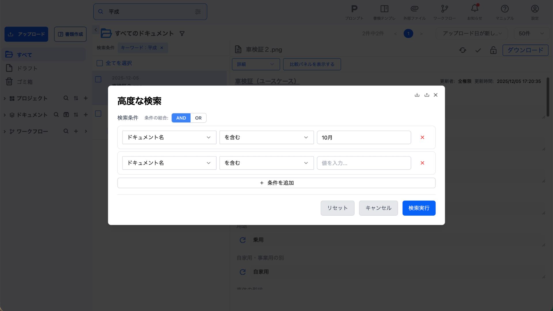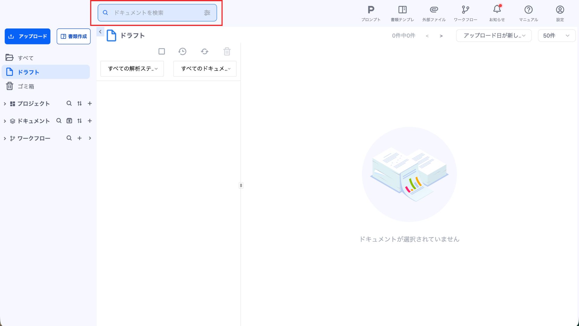 ドキュメント検索機能は、ワークスペース内の登録されたドキュメントを効率的に検索・絞り込むための機能です。