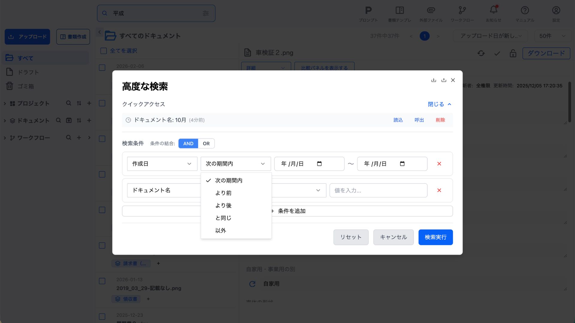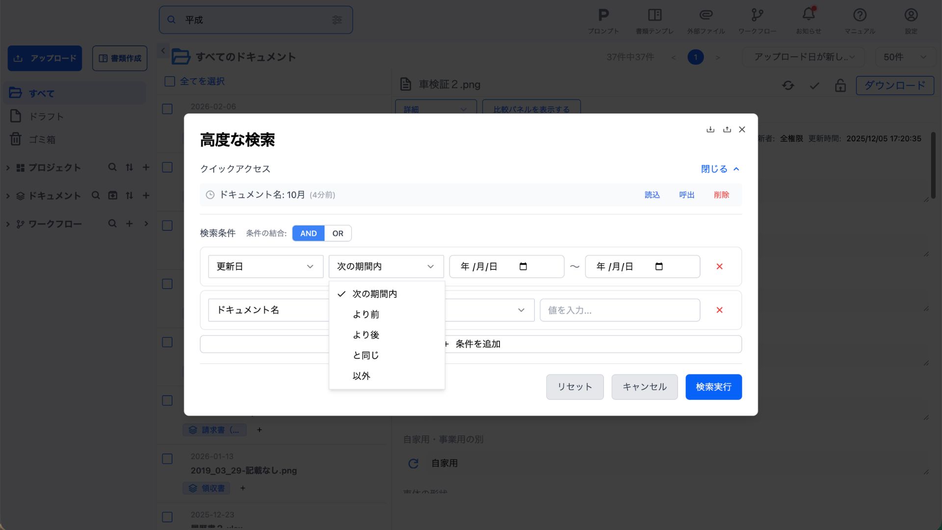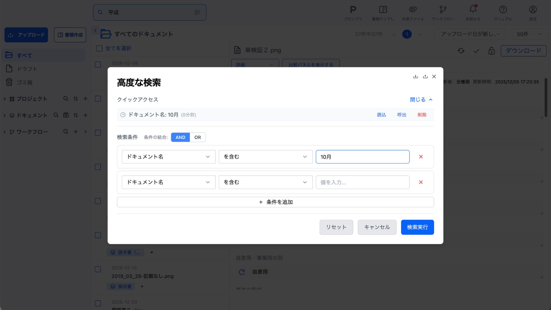高度な検索機能では、複数の条件を組み合わせた詳細な検索が可能です。
