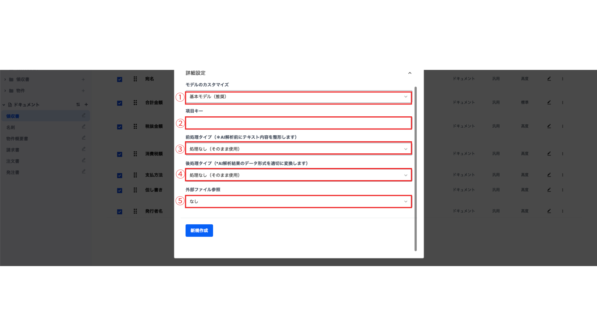 ドキュメント解析に使用するAIモデルを選択できます。