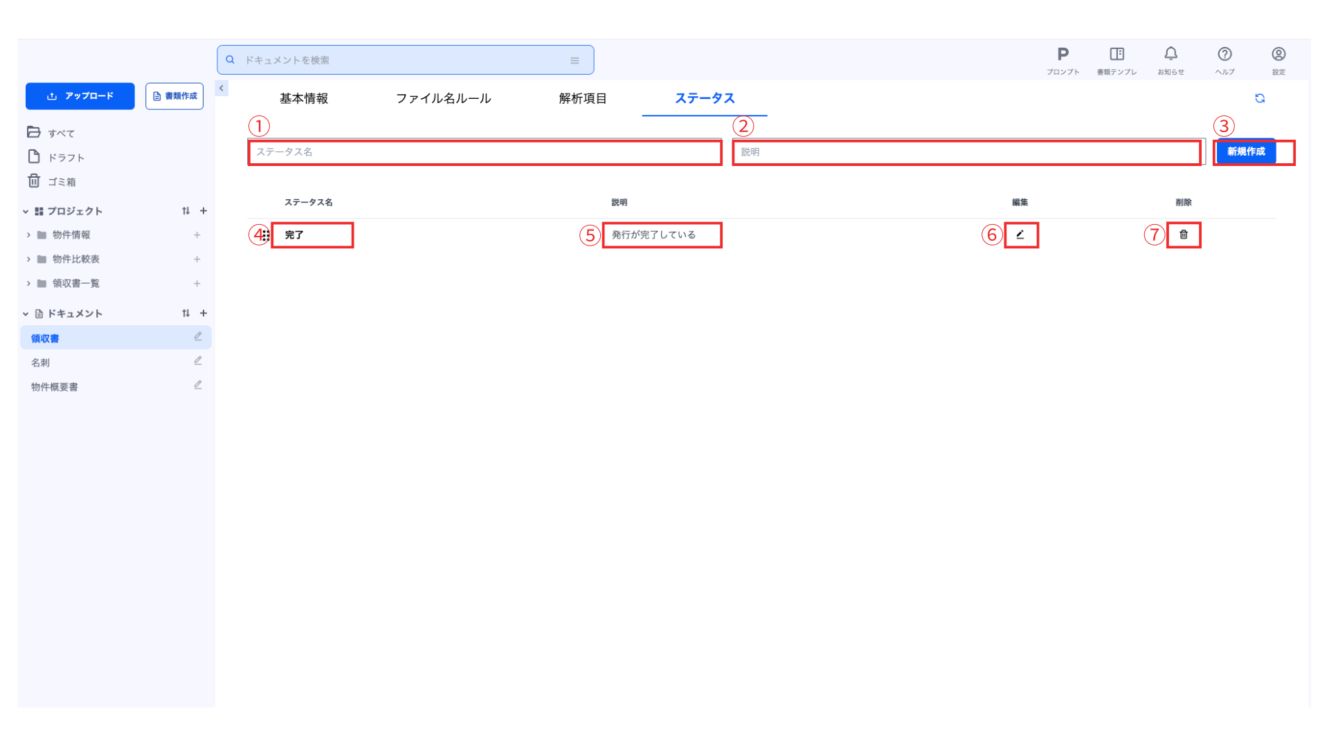 ドキュメントに付与できるステータスを作成できます。