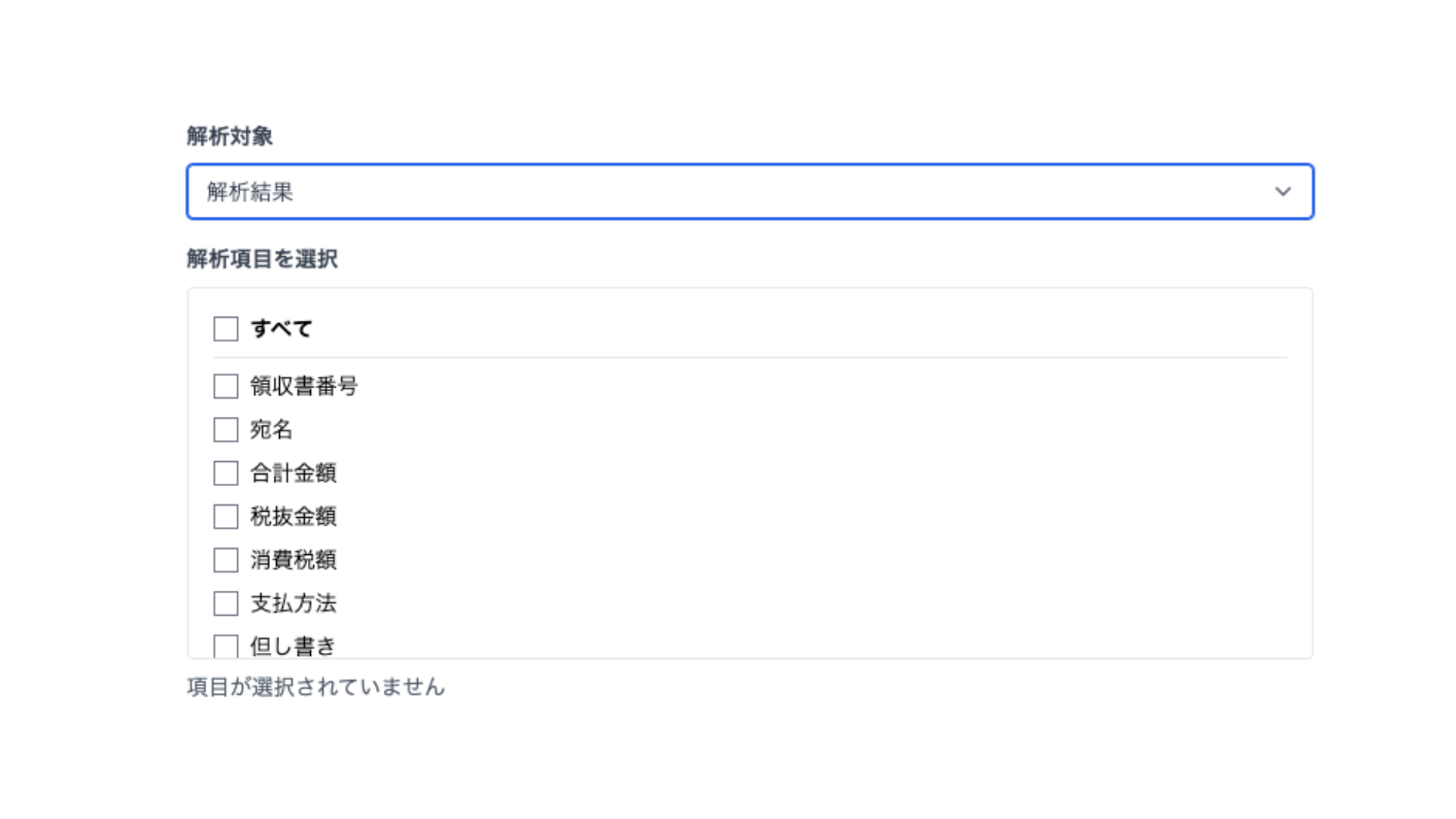 解析対象に「解析結果」が含まれている場合は、具体的な解析項目を解析対象として選択できます。