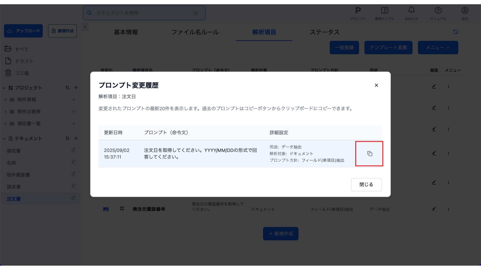 解析項目に設定されているプロンプト(命令文)です。