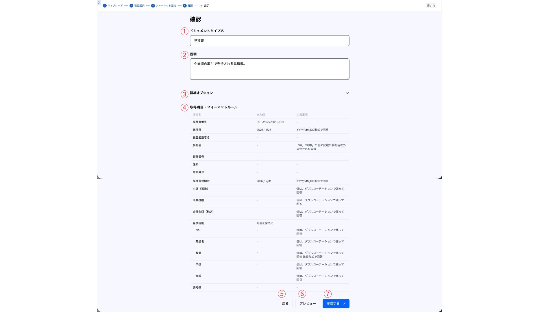 ドキュメントタイプの説明の確認・変更ができます。説明にはあらかじめAIが提案する簡単な説明文が入力されています。