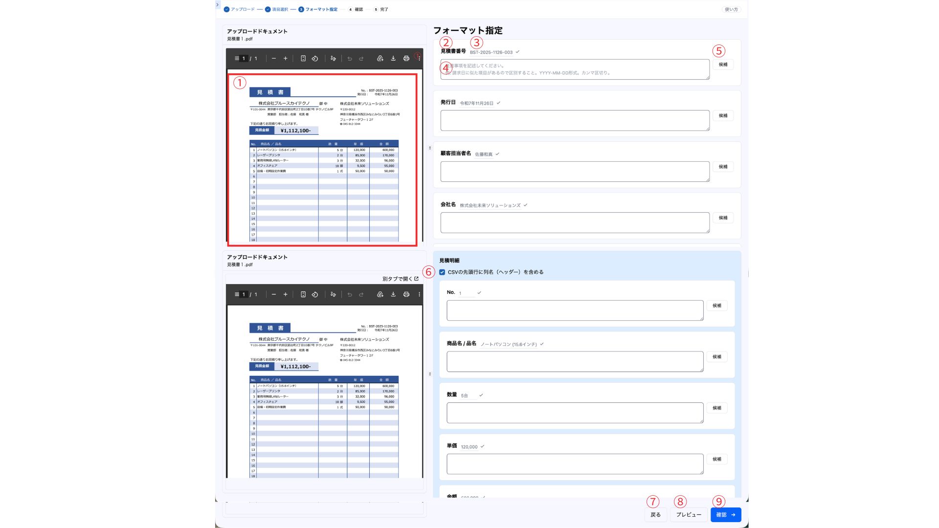 ドキュメントのアップロード画面に戻ります。取得項目選択画面の状態は破棄されます。