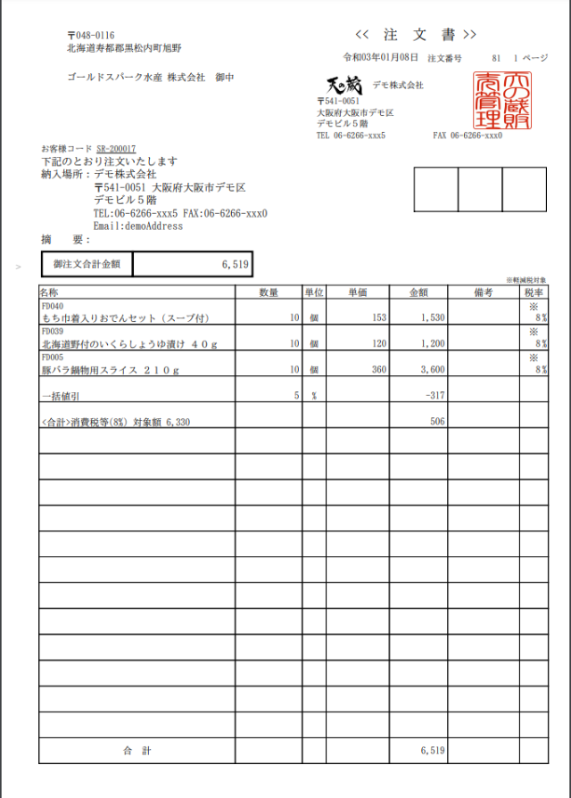 発注元会社名 | 天の蔵 デモ株式会社 |