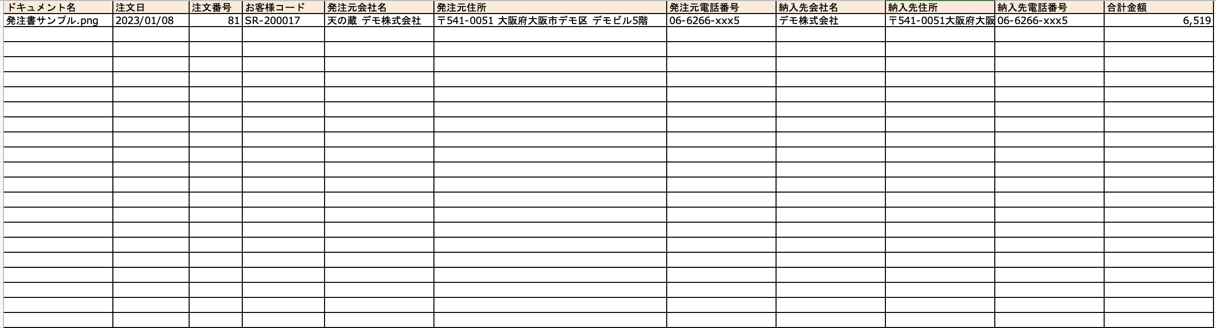 注文書から納品書を作成するためには少なくても以下の項目の値を抽出しなければなりません。