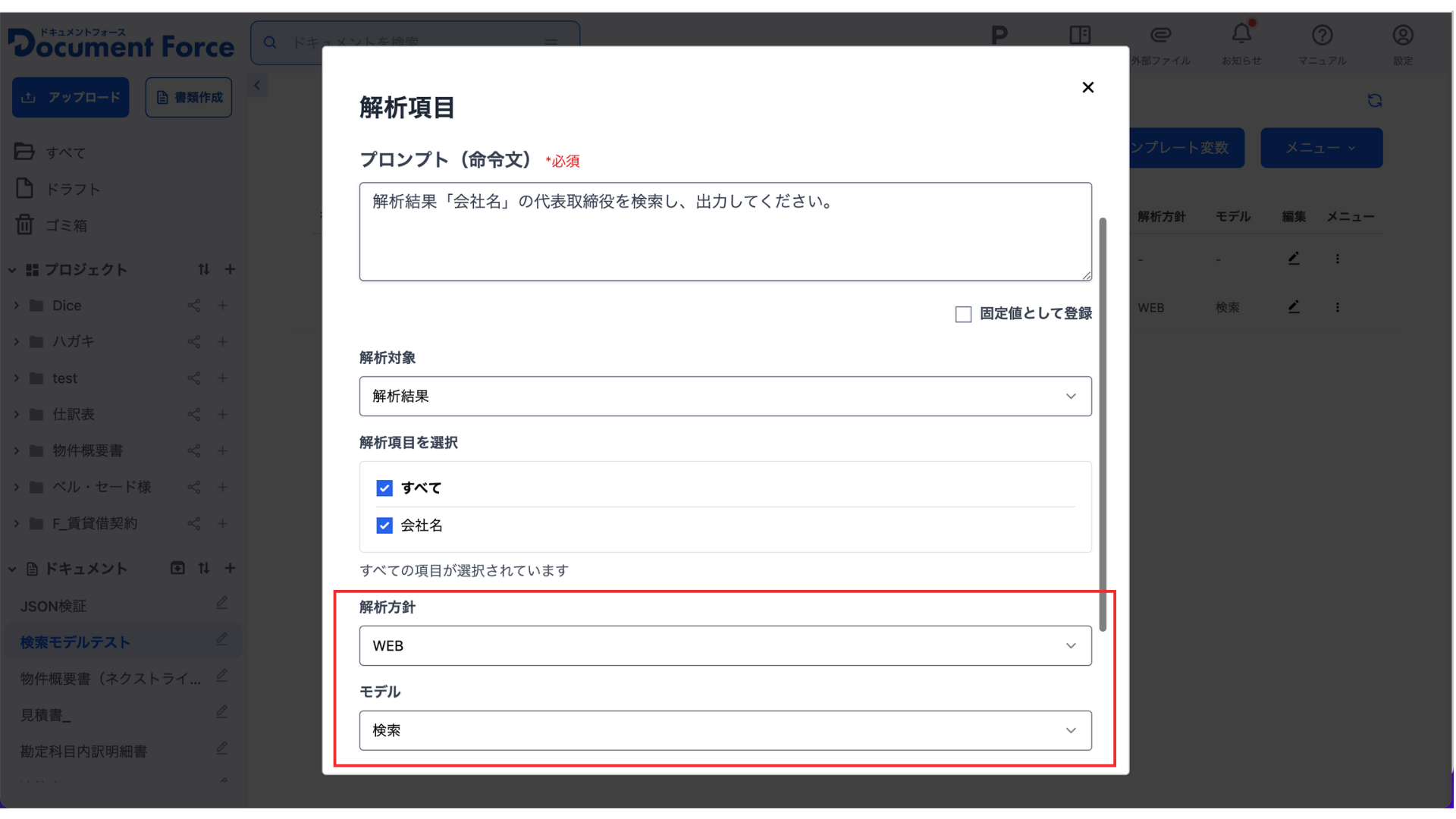 ドキュメント解析項目名: