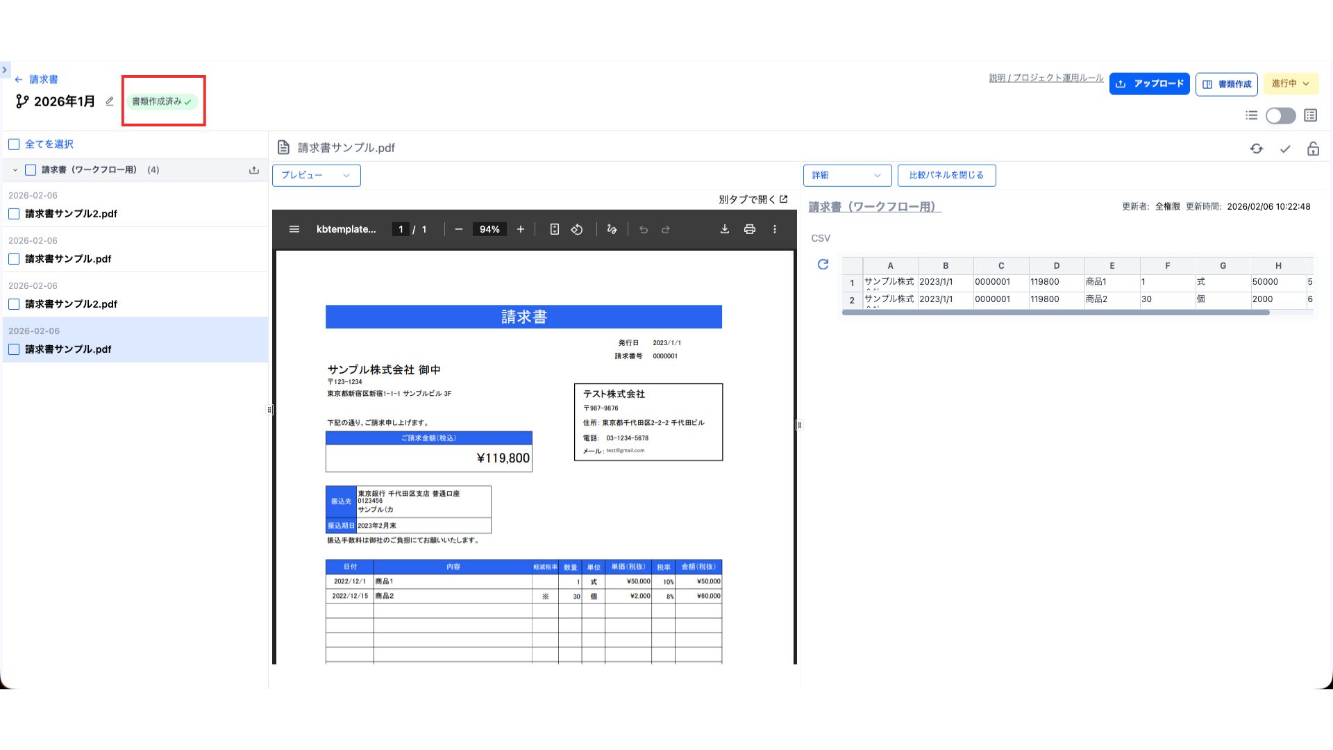 書類作成が完了すると、タスクの書類作成ステータスは自動的に「書類作成済み」となります。